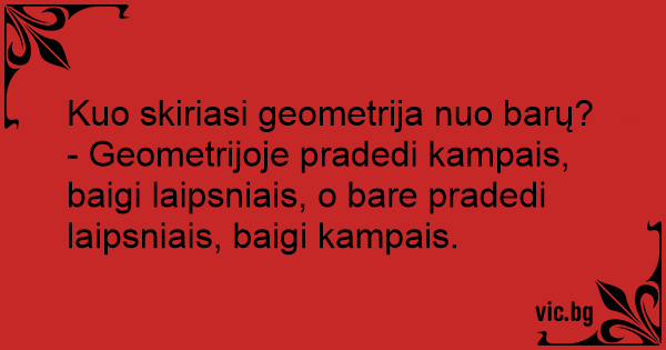 - Geometrijoje pradedi kampais, baigi laipsniais, o bare pradedi laipsniais, baigi kampais.