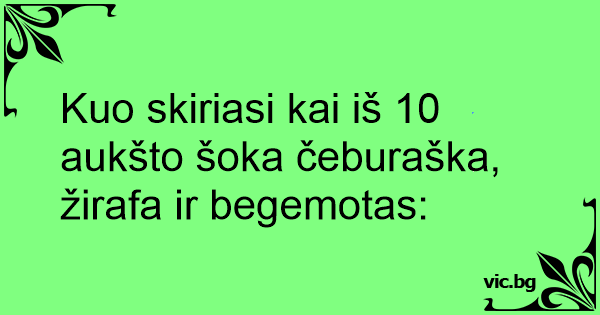 Kuo skiriasi kai iš 10 aukšto šoka čeburaška, žirafa ir begemotas: