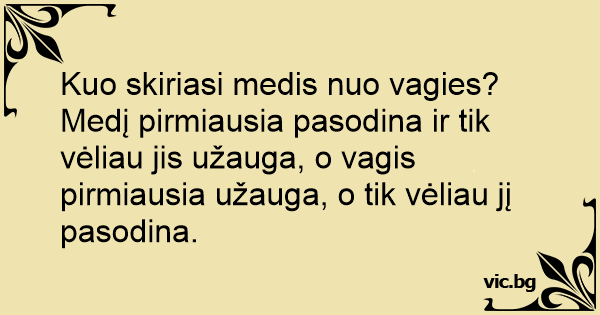 Medį pirmiausia pasodina ir tik vėliau jis užauga, o vagis pirmiausia užauga, o tik vėliau jį pasodina.