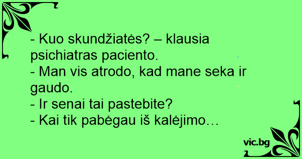 - Kuo skundžiatės? – klausia psichiatras paciento.