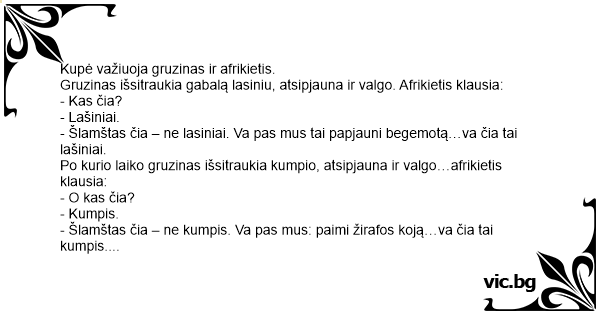 - Šlamštas čia – ne lasiniai. Va pas mus tai papjauni begemotą…va čia tai lašiniai.