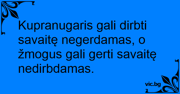Kupranugaris gali dirbti savaitę negerdamas, o žmogus gali gerti savaitę nedirbdamas.