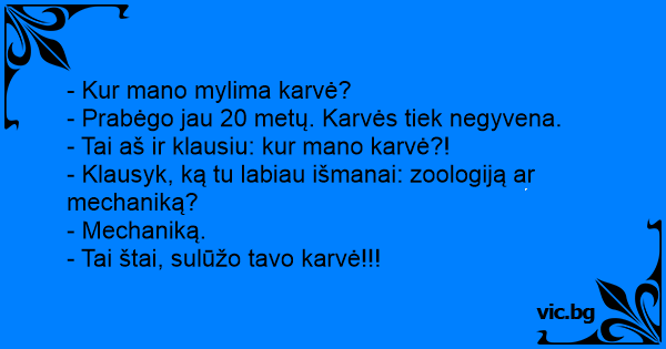 - Klausyk, ką tu labiau išmanai: zoologiją ar mechaniką?