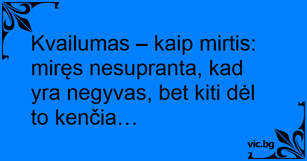 Kvailumas – kaip mirtis: miręs nesupranta, kad yra negyvas, bet kiti dėl to kenčia…