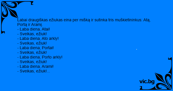 - Gerai, ežiuk.- Kaip sekasi, Arami?