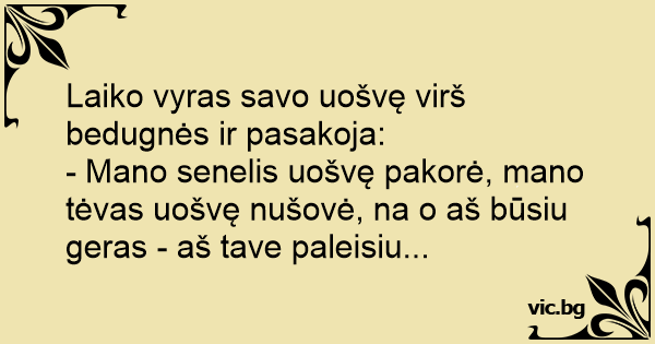 Laiko vyras savo uošvę virš bedugnės ir pasakoja: