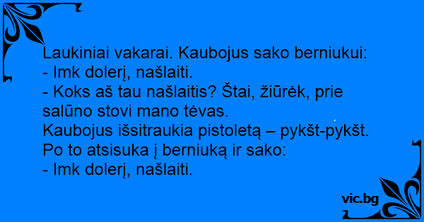Kaubojus išsitraukia pistoletą – pykšt-pykšt. Po to atsisuka į berniuką ir sako: