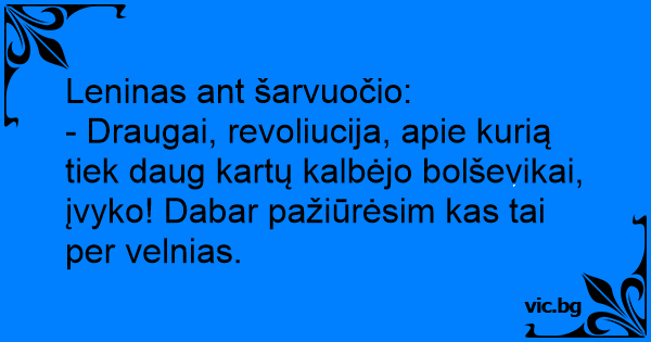 - Draugai, revoliucija, apie kurią tiek daug kartų kalbėjo bolševikai, įvyko! Dabar pažiūrėsim kas tai per velnias.