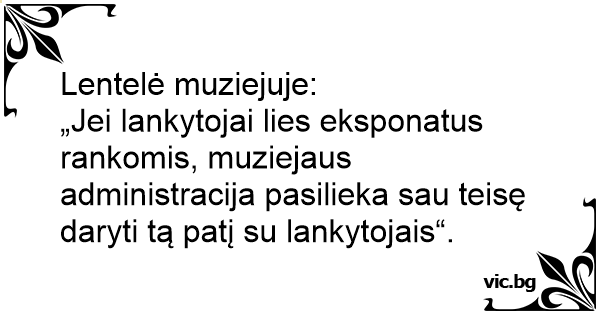 „Jei lankytojai lies eksponatus rankomis, muziejaus administracija pasilieka sau teisę daryti tą patį su lankytojais“.
