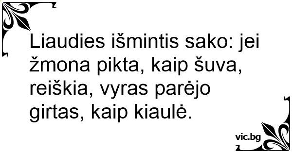 Liaudies išmintis sako: jei žmona pikta, kaip šuva, reiškia, vyras parėjo girtas, kaip kiaulė.