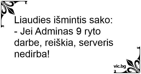 - Jei Adminas 9 ryto darbe, reiškia, serveris nedirba!
