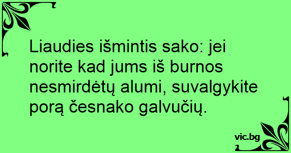 Liaudies išmintis sako: jei norite kad jums iš burnos nesmirdėtų alumi, suvalgykite porą česnako galvučių.