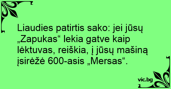Liaudies patirtis sako: jei jūsų „Zapukas“ lekia gatve kaip lėktuvas, reiškia, į jūsų mašiną įsirėžė 600-asis „Mersas“.