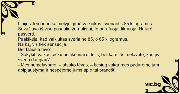 Paaiškėja, kad vaikiukas sveria ne 85, o 65 kilogramus.