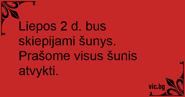 Liepos 2 d. bus skiepijami šunys. Prašome visus šunis atvykti.