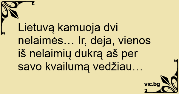 Lietuvą kamuoja dvi nelaimės… Ir, deja, vienos iš nelaimių dukrą aš per savo kvailumą vedžiau…