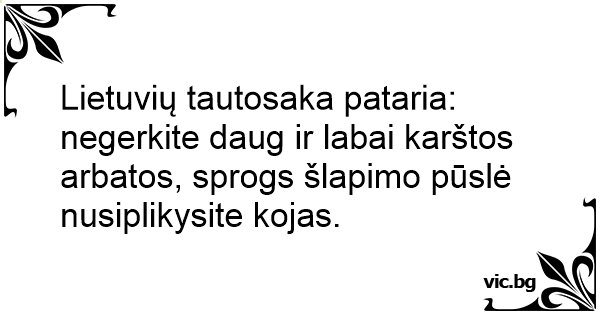 Lietuvių tautosaka pataria: negerkite daug ir labai karštos arbatos, sprogs šlapimo pūslė nusiplikysite kojas.