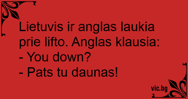 Lietuvis ir anglas laukia prie lifto. Anglas klausia: