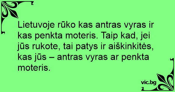 Lietuvoje rūko kas antras vyras ir kas penkta moteris. Taip kad, jei jūs rukote, tai patys ir aiškinkitės, kas jūs – antras vyras ar penkta moteris.