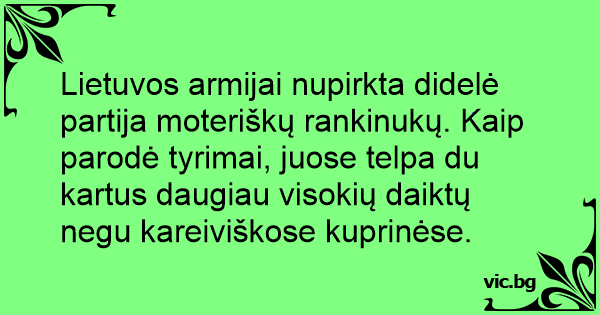 Lietuvos armijai nupirkta didelė partija moteriškų rankinukų. Kaip parodė tyrimai, juose telpa du kartus daugiau visokių daiktų negu kareiviškose kuprinėse.