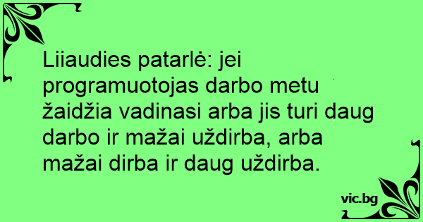Liiaudies patarlė: jei programuotojas darbo metu žaidžia vadinasi arba jis turi daug darbo ir mažai uždirba, arba mažai dirba ir daug uždirba.