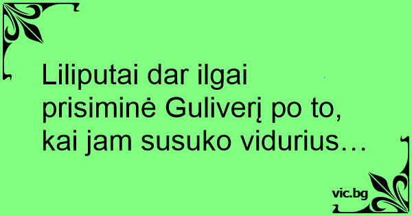 Liliputai dar ilgai prisiminė Guliverį po to, kai jam susuko vidurius…