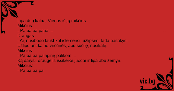 Ką darysi, draugelis išsikeikė juodai ir lipa abu žemyn.
