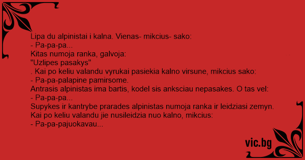 Lipa du alpinistai i kalna. Vienas- mikcius- sako: