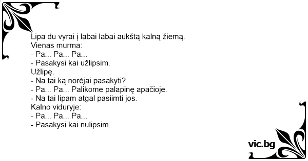 - Pasakysi kai užlipsim.
