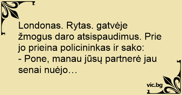 Londonas. Rytas. gatvėje žmogus daro atsispaudimus. Prie jo prieina policininkas ir sako: