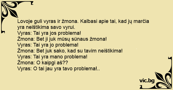 Žmona: Bet juk sako, kad su tavim neištikima!