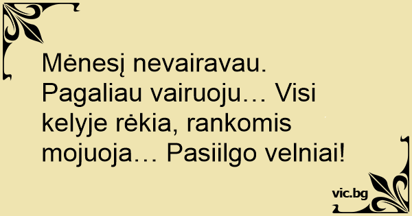 Mėnesį nevairavau. Pagaliau vairuoju… Visi kelyje rėkia, rankomis mojuoja… Pasiilgo velniai!