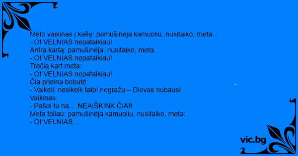 - Vaikeli, nesikeik taip! negražu – Dievas nubaus!