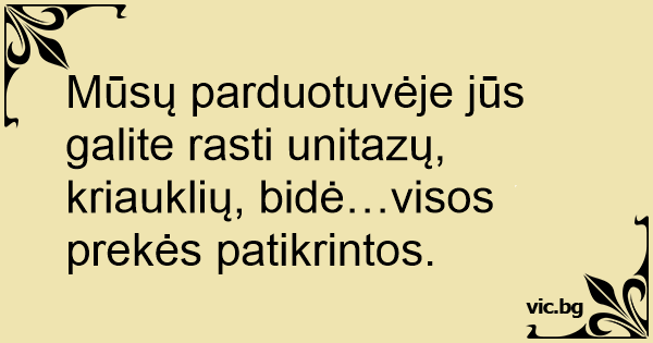 Mūsų parduotuvėje jūs galite rasti unitazų, kriauklių, bidė…visos prekės patikrintos.