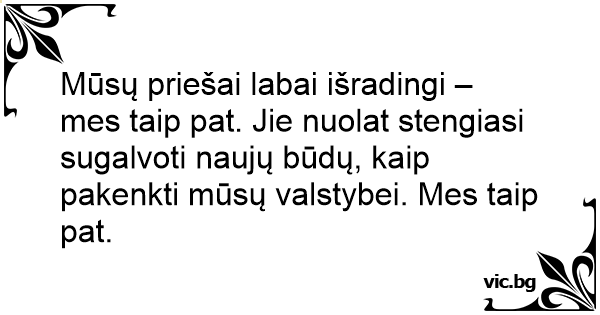 Mūsų priešai labai išradingi – mes taip pat. Jie nuolat stengiasi sugalvoti naujų būdų, kaip pakenkti mūsų valstybei. Mes taip pat.