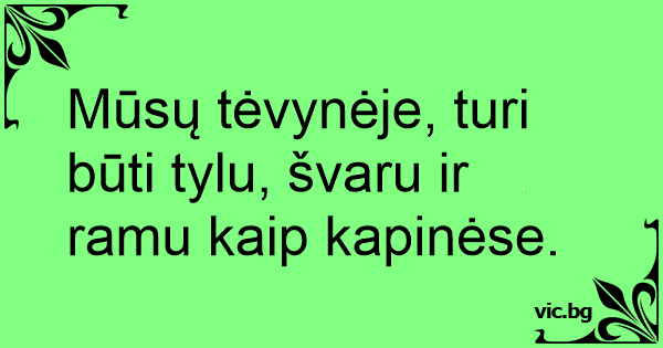 Mūsų tėvynėje, turi būti tylu, švaru ir ramu kaip kapinėse.