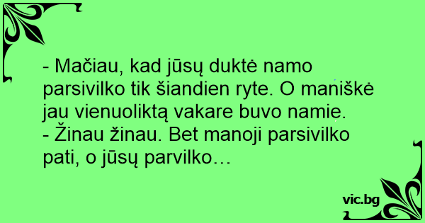 - Žinau žinau. Bet manoji parsivilko pati, o jūsų parvilko…