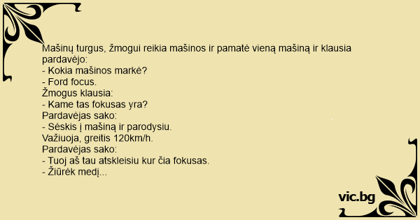 - Tuoj aš tau atskleisiu kur čia fokusas.