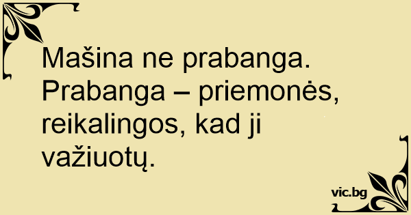 Mašina ne prabanga. Prabanga – priemonės, reikalingos, kad ji važiuotų.