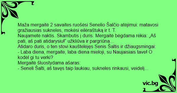 - Laba diena, mergaite, laba diena mieloji, su Naujaisiais tave! O kodėl gi tu verki?