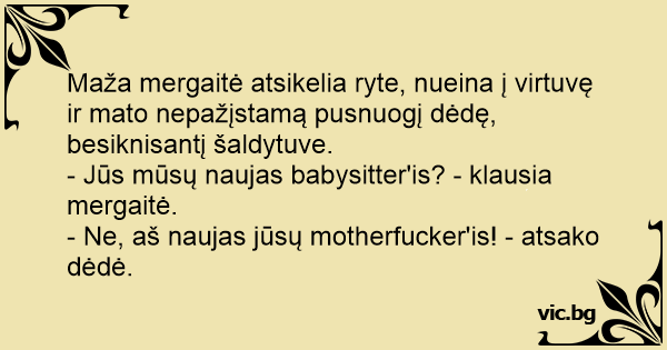 - Ne, aš naujas jūsų мотhеrfuскеr'is! - atsako dėdė.