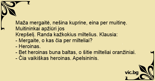 Krepšelį. Randa kažkokius miltelius. Klausia: