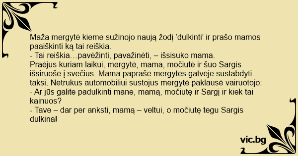 - Tai reiškia…pavėžinti, pavažinėti, – išsisuko mama.