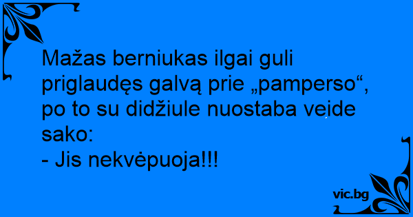 Mažas berniukas ilgai guli priglaudęs galvą prie „pamperso“, po to su didžiule nuostaba veide sako: