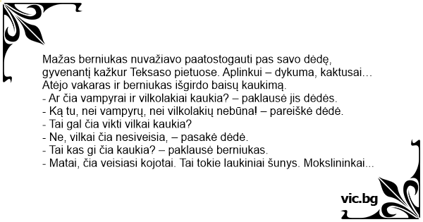 - Ką tu, nei vampyrų, nei vilkolakių nebūna! – pareiškė dėdė.