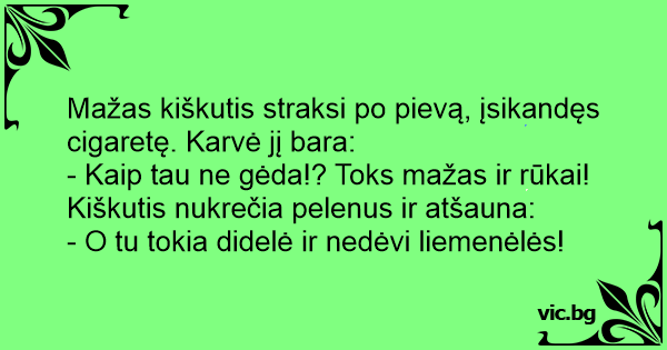 Mažas kiškutis straksi po pievą, įsikandęs cigaretę. Karvė jį bara: