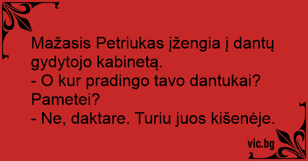Mažasis Petriukas įžengia į dantų gydytojo kabinetą.