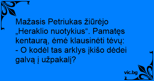 Mažasis Petriukas žiūrėjo „Heraklio nuotykius“. Pamatęs kentaurą, ėmė klausinėti tėvų: