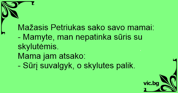 - Mamyte, man nepatinka sūris su skylutėmis.