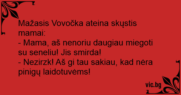 - Mama, aš nenoriu daugiau miegoti su seneliu! Jis smirda!